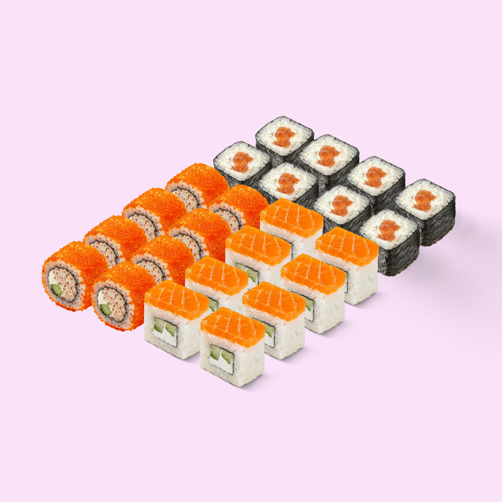 Чиби сет — малыш, который пришёл и всех накормил. Три сытных и очень вкусных ролла — маленький, но удаленький! Состав: Ролл филадельфия Лайт, Калифорния с крабом, Чиз маки лосось