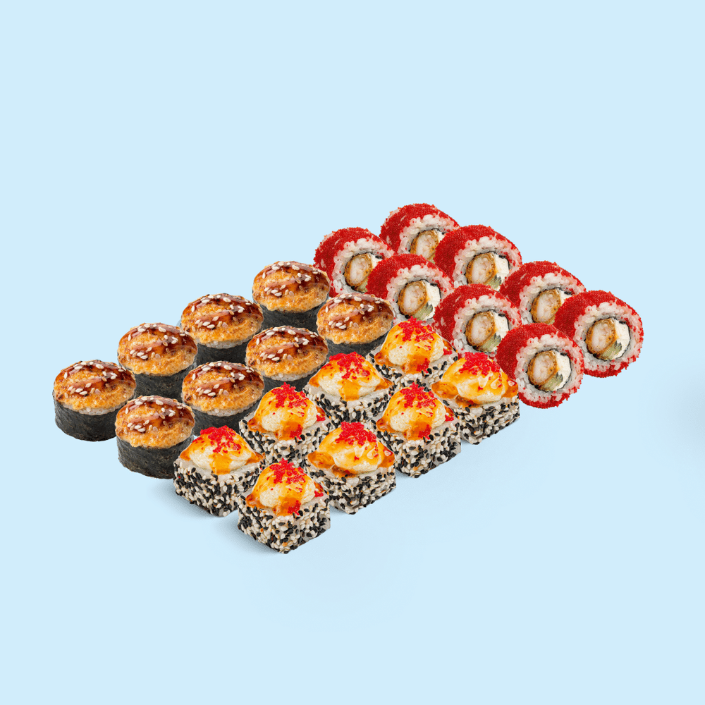 Когда даже сет говорит на твоём диалекте. Горячий гриль, запечённая фила и том-ям — всё по-белорусски вкусно и по-местному душевно. Почувствуй вайб твоего города! Состав: Гриль маки, Запеченная филадельфия с лососем и крабом, Шрим ролл том ям
